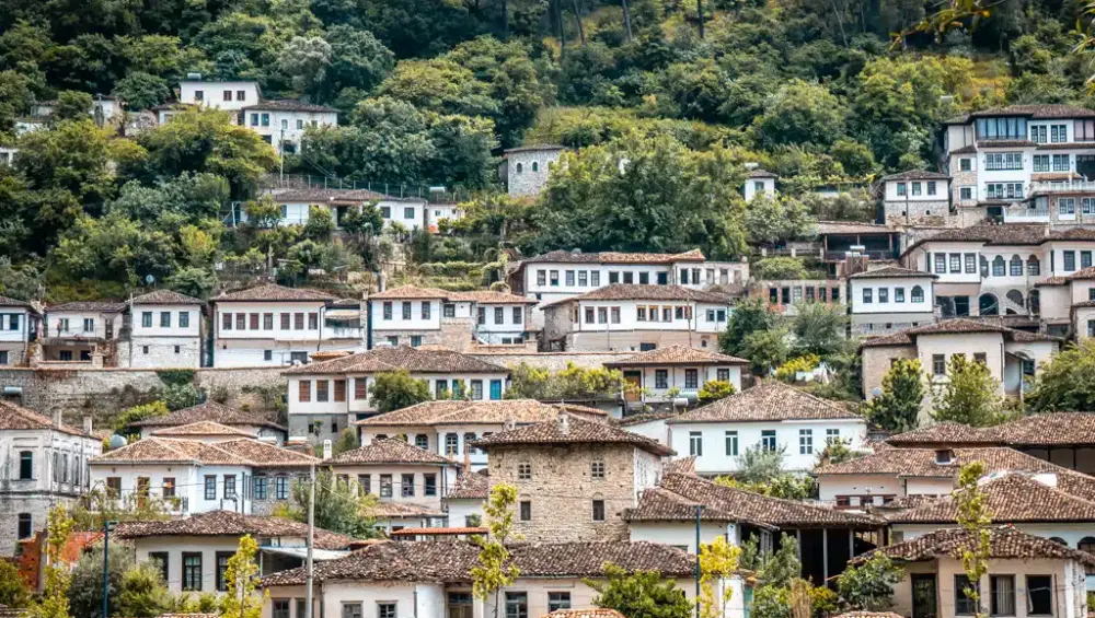 Berat, a UNESCO World Heritage Site, is known as the “Town of 1001 Windows.” Its hillside of Ottoman‑era houses, cobbled streets, and Byzantine churches make it one of Albania’s most picturesque destinations.